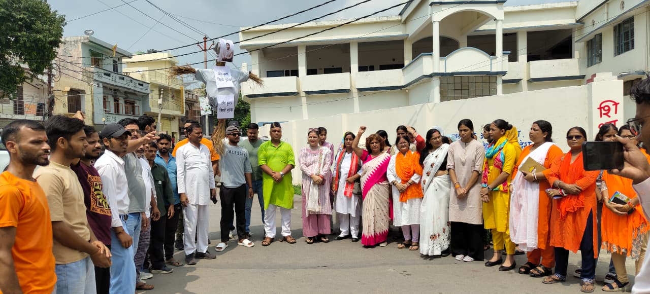 आक्रोषित बजरंग दल विश्व हिंदू परिषद में फूंका का खानपुर विधायक उमेश कुमार का पुतला